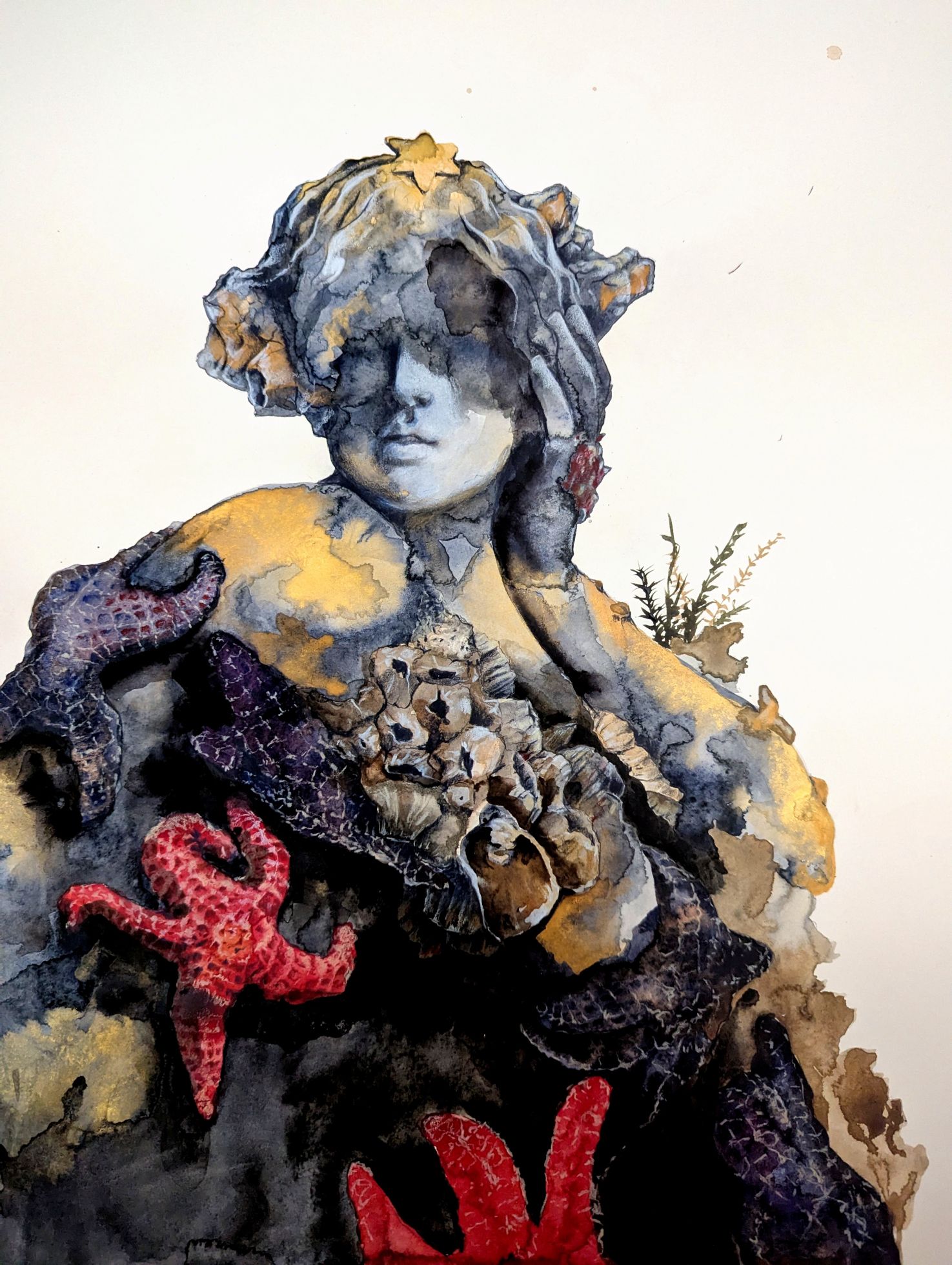 This original watercolor and oil painting on wrapped canvas measures 18×13″ and comes unframed ready to hang. Crystal James has a degree from the Pennsylvania Academy of Fine Arts and a background in Museum Conservation. She has established herself as a rising star. Her unique style combines watercolor, oil and mixed media on paper, mounted to panel. Crystal has exhibited across the country, and her pieces are highly sought after by collectors.
