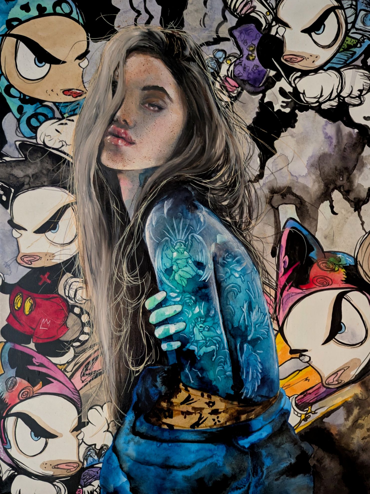 This original watercolor and oil painting on wrapped canvas measures 18×24″ and comes unframed ready to hang. Crystal James has a degree from the Pennsylvania Academy of Fine Arts and a background in Museum Conservation. She has established herself as a rising star. Her unique style combines watercolor, oil and mixed media on paper, mounted to panel. Crystal has exhibited across the country, and her pieces are highly sought after by collectors.