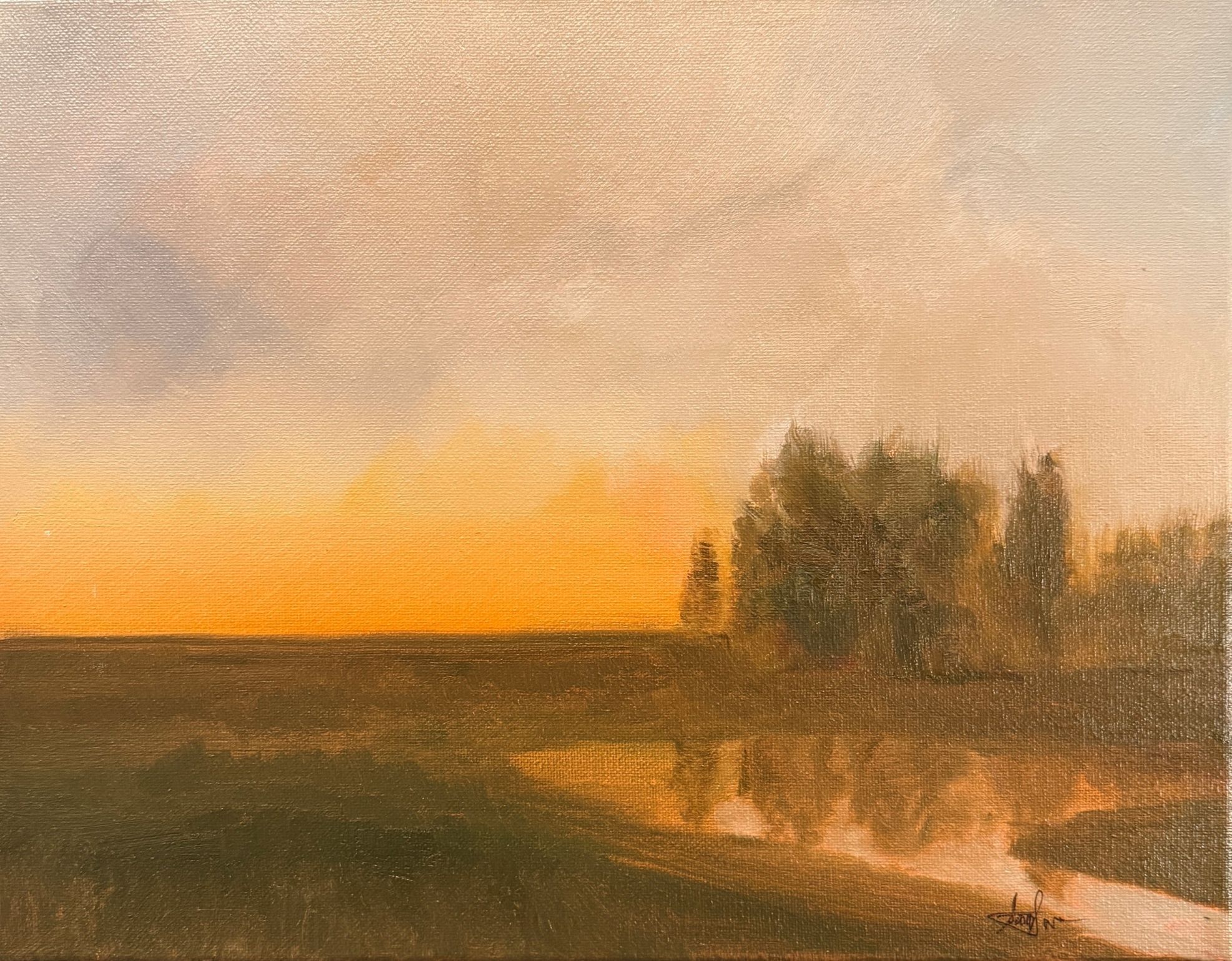 This original oil on canvas measures 11×14 and comes in a black frame ready to hang. Scott Love discovered his passion for art while a midshipman at the U.S. Naval Academy, where sketching became a way to maintain balance within a rigorous environment and shaped his disciplined, observational approach. A painter of more than twenty years, he works in both watercolor and oil, creating floral, aviary, and landscape subjects, with works exhibited at the World Bank and held in private collections. Drawing on the Japanese tradition of The Three Perfections, Love often pairs his paintings with original poetry and calligraphy, creating a layered and reflective artistic experience.