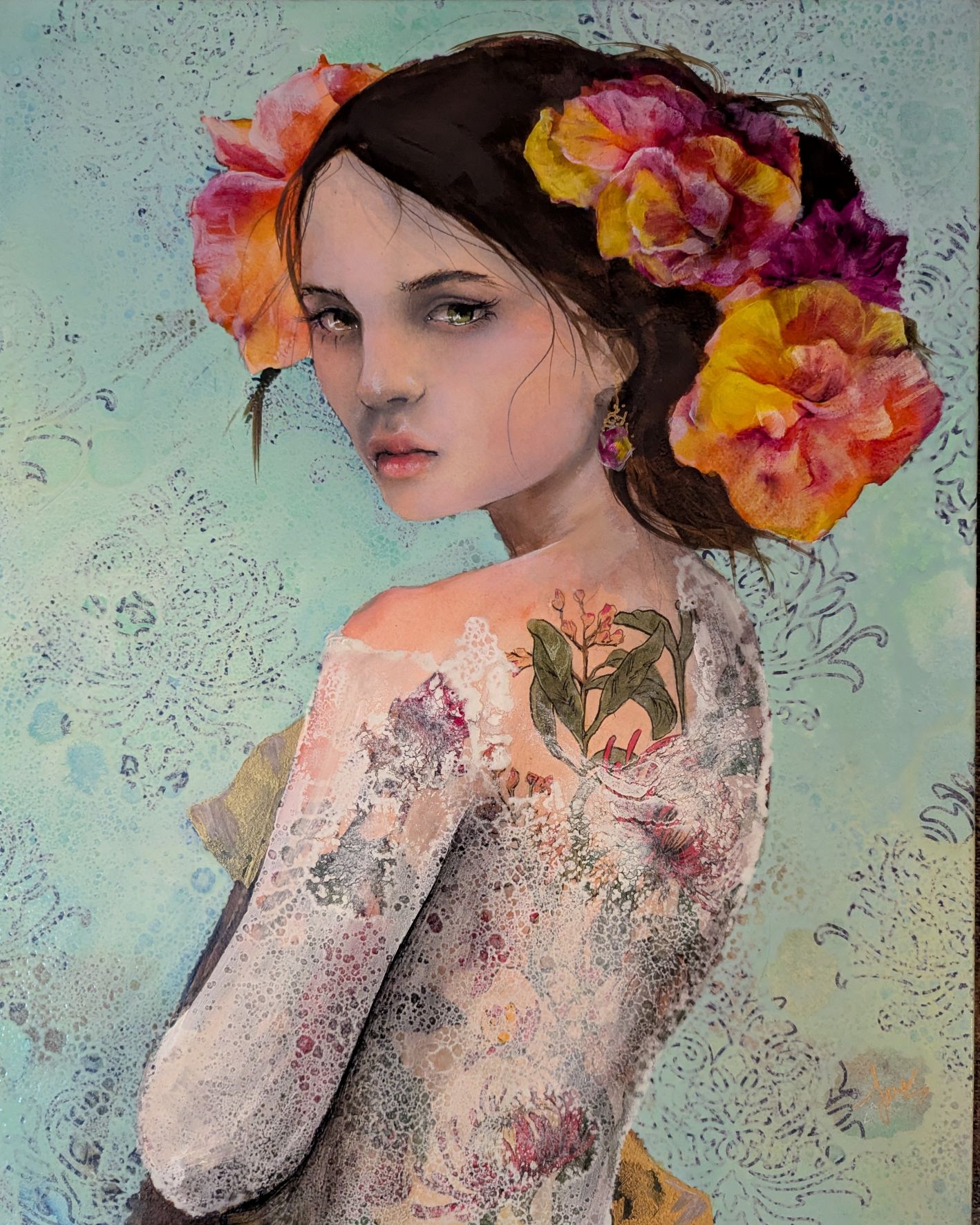 This original oil and watercolor on wrapped panel measures 18×24″ and comes unframed ready to hang. Crystal James is a talented artist in Richmond, VA. With a background in Museum Conservation and a degree from the Pennsylvania Academy of Fine Arts, she has established herself as a rising star. Her unique style combines watercolor and mixed media on paper, mounted to panel, garnering widespread acclaim. Crystal’s works are visually stunning and showcase her exceptional talent and creativity. She has exhibited across the country, and her pieces are highly sought after by collectors.